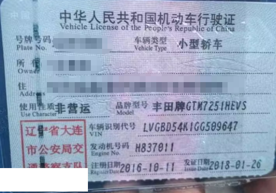车牌号 辽****** 品牌 丰田