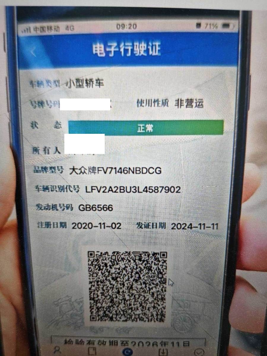 初次登记日期 2020-11-02 车辆名称 大众 速腾