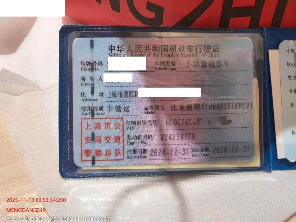 初次登记日期 2024-12-31 车辆名称 比亚迪