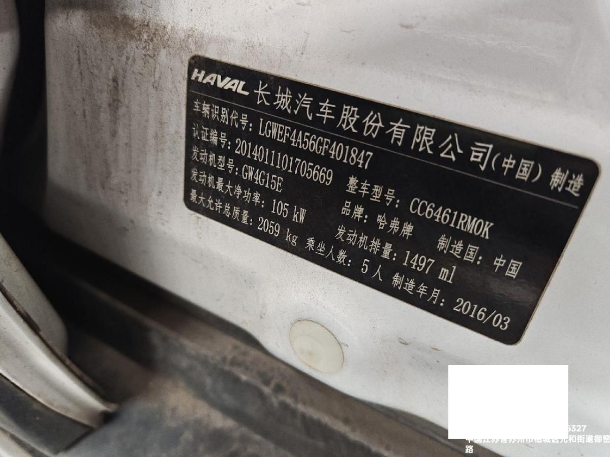 初次登记日期 2016-03-29 车辆名称 哈弗H6