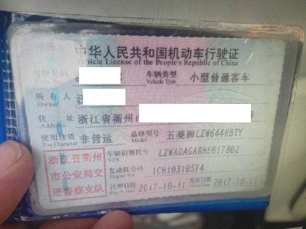 车牌号 浙****** 品牌 五菱