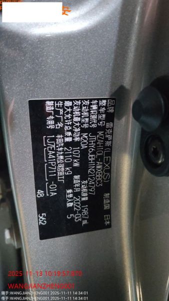 初次登记日期 2022-04-29 车辆名称 雷克萨斯