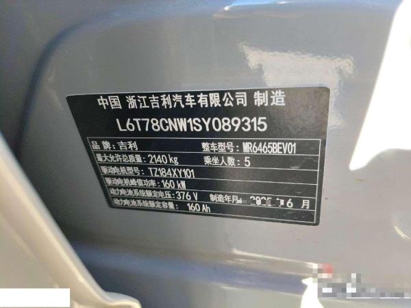 初次登记日期 2025-07-08 车辆名称 吉利银河 银河E5