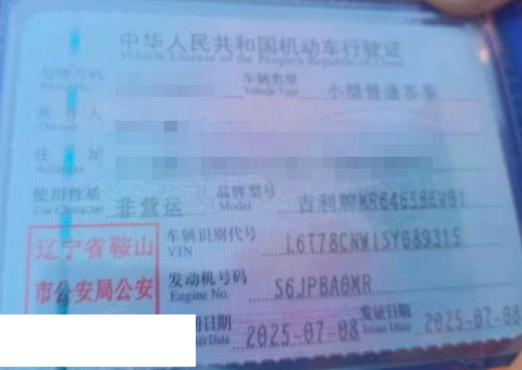 车牌号 辽****** 品牌 吉利