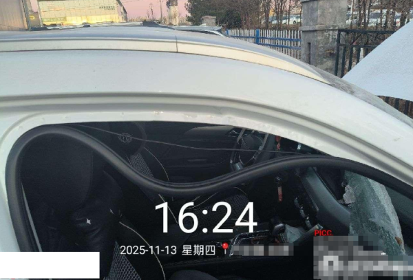 根据所给照片,自行判断钢印号是否受损 标的车行驶碰四轮车,车辆右侧受损,车架号没拍到