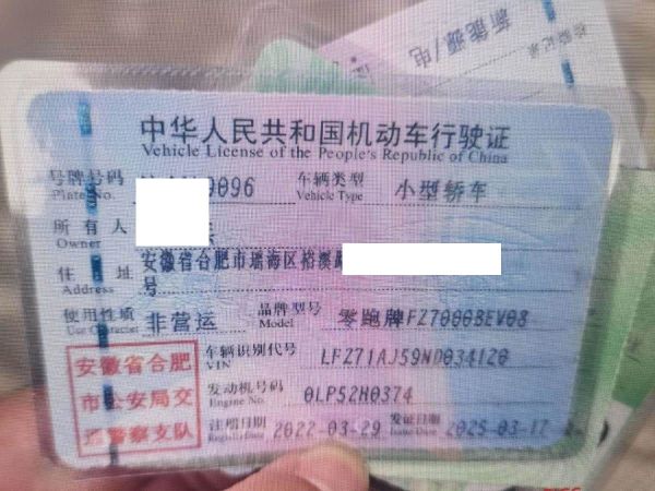 车牌号 皖****** 品牌 零跑
