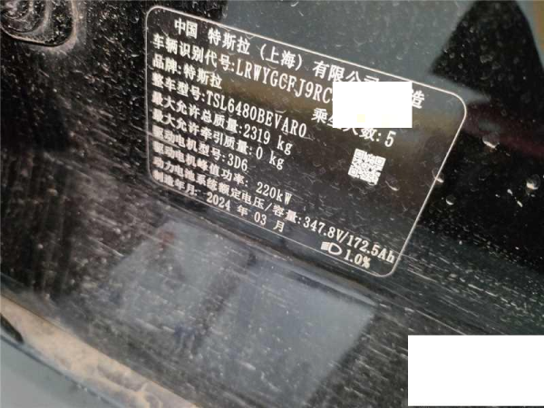 初次登记日期 2024-03-25 车辆名称 特斯拉 Model