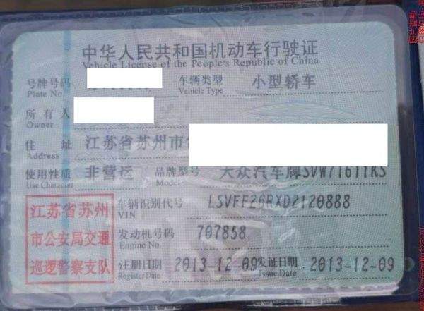 车辆归属地 江苏省苏州市 车辆停放仓库 江苏省常熟市常熟市
