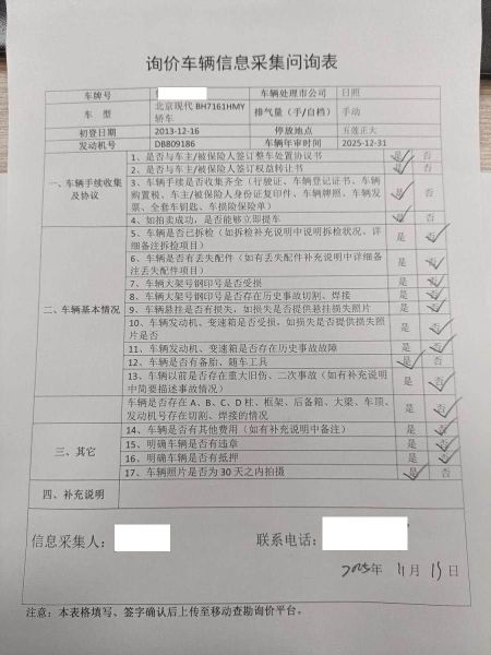 车架号是否受损 使用性质 非营运