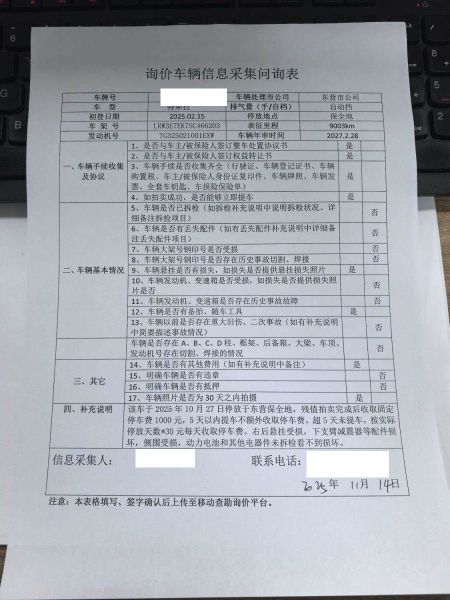 车架号是否受损 使用性质 非营运