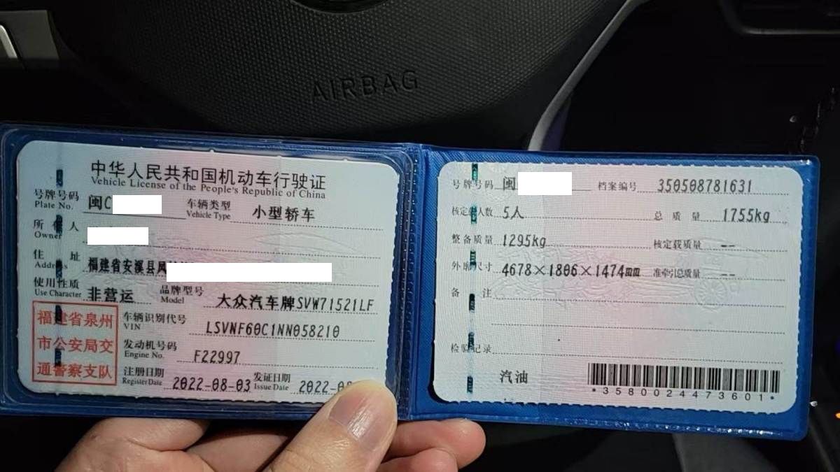 初次登记日期 2022-08-03 车辆名称 大众 朗逸