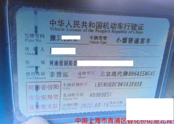 车辆归属地 河南省信阳市 车辆停放仓库 上海市青浦区青浦区