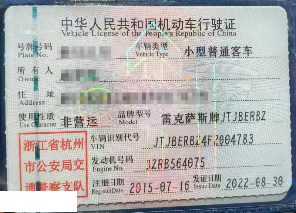 车牌号 浙****** 品牌 雷克萨斯