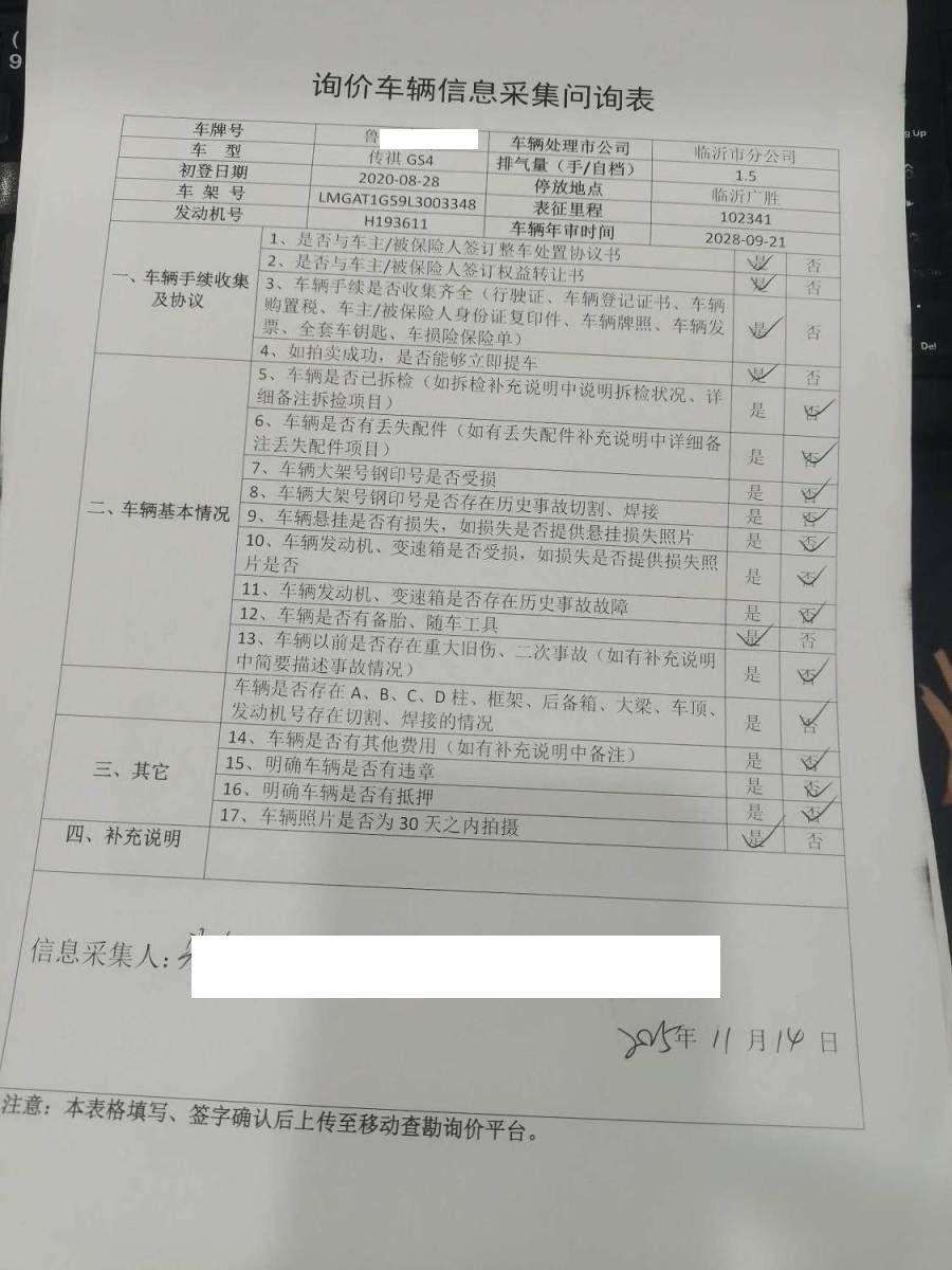 车牌号 鲁****** 品牌 传祺