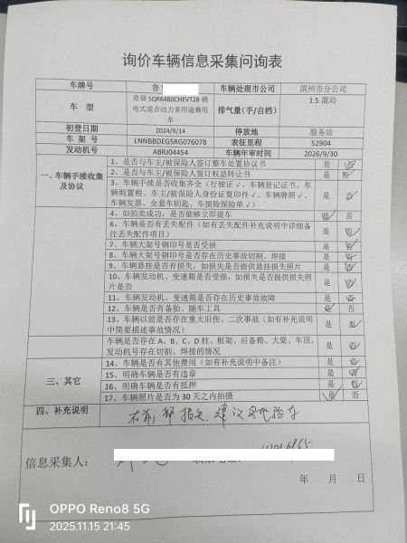 车架号是否受损 使用性质 非营运