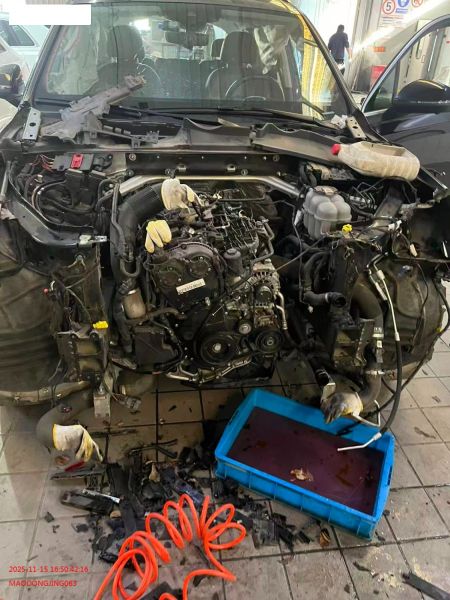 已拆解,后续可能将发动机拆卸下来。历史可能有水淹事故,车主疑似诉讼被执行人;抵押情况不详;车辆存在二次事故修复痕迹