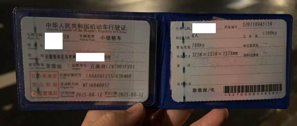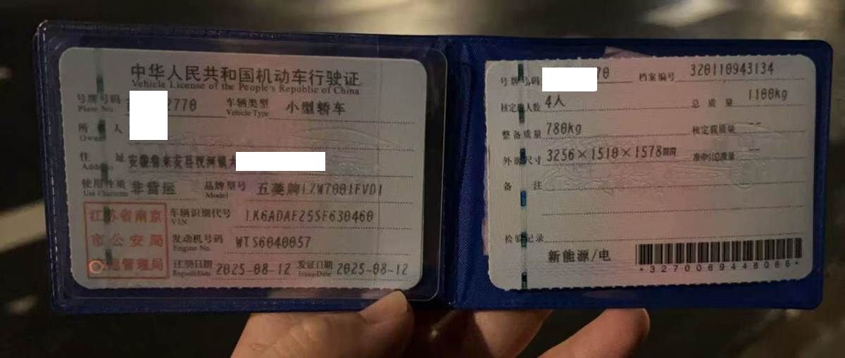 初次登记日期 2025-08-12 车辆名称 五菱汽车 宏光