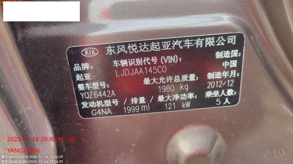 车牌号 鄂****** 品牌 起亚