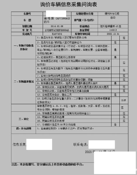 车架号是否受损 未知 使用性质 非营运
