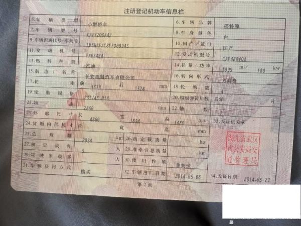 初次登记日期 2014-05-23 车辆名称 福特 蒙迪欧