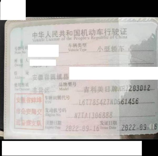 车牌号 皖****** 品牌 吉利