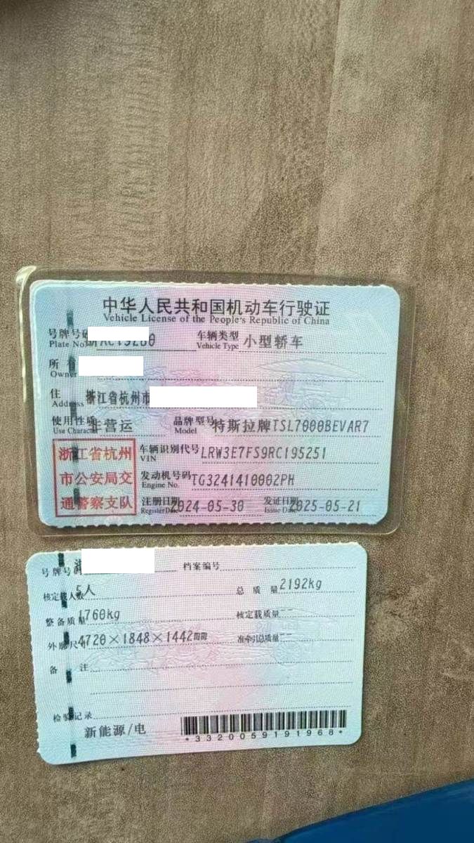 车牌号 浙****** 品牌 特斯拉