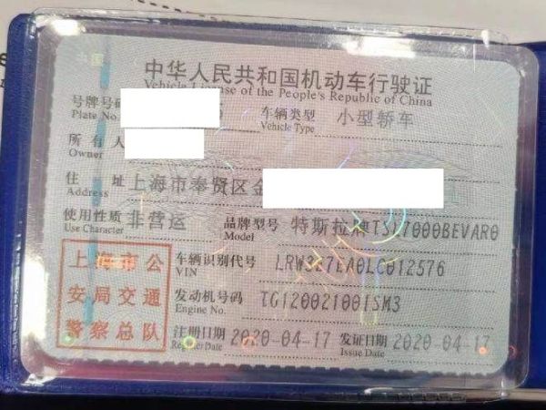 初次登记日期 2020-04-17 车辆名称 特斯拉