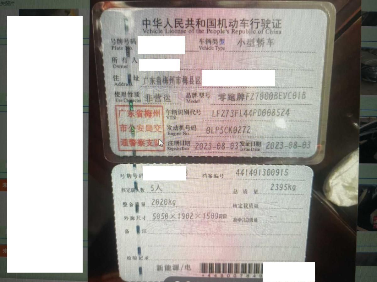 初次登记日期 2023-08-03 车辆名称 零跑汽车