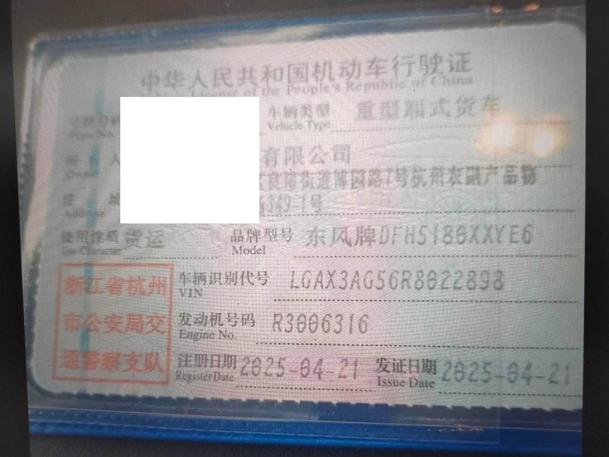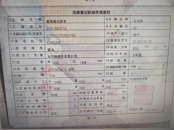 初次登记日期 2025-04-21 车辆名称 东风牌