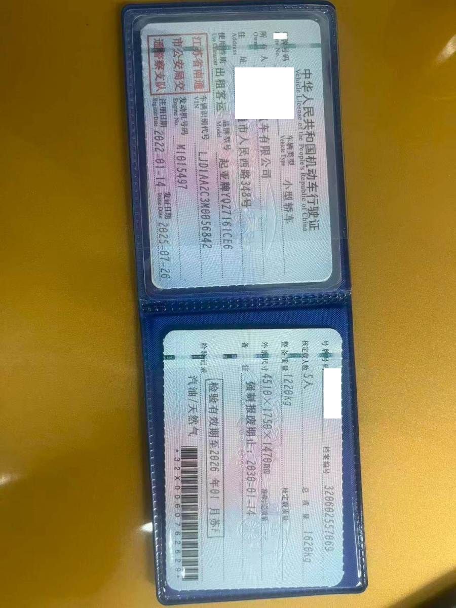 车辆归属地 江苏省南通市 车辆停放仓库 江苏省南通市南通市