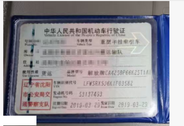 车牌号 辽****** 品牌 解放
