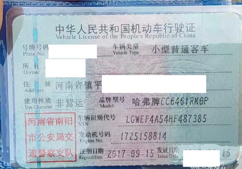 车牌号 豫****** 品牌 哈弗