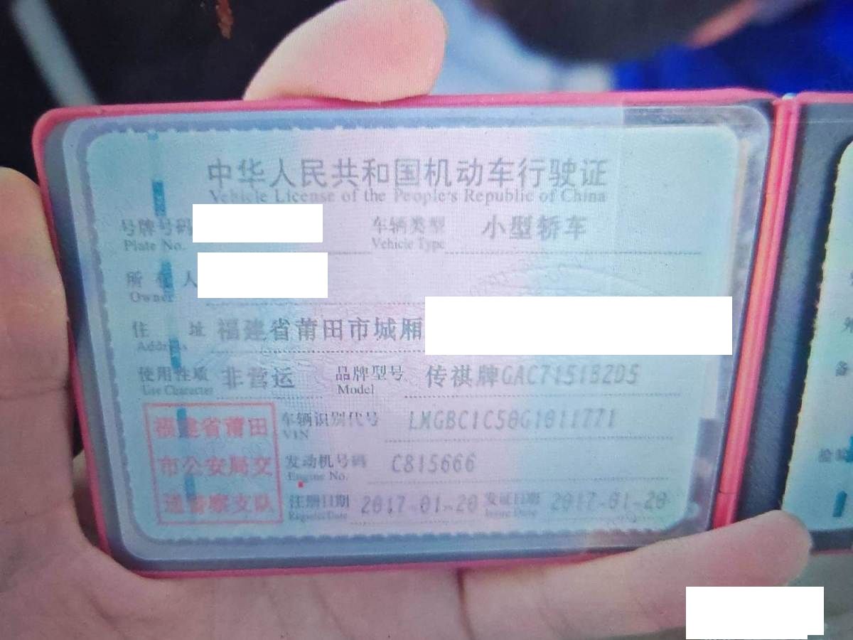 初次登记日期 2017-01-20 车辆名称 广汽传祺 传祺GA6