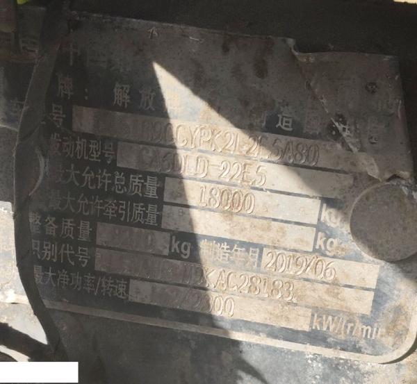 初次登记日期 2019-07-23 车辆名称 解放牌