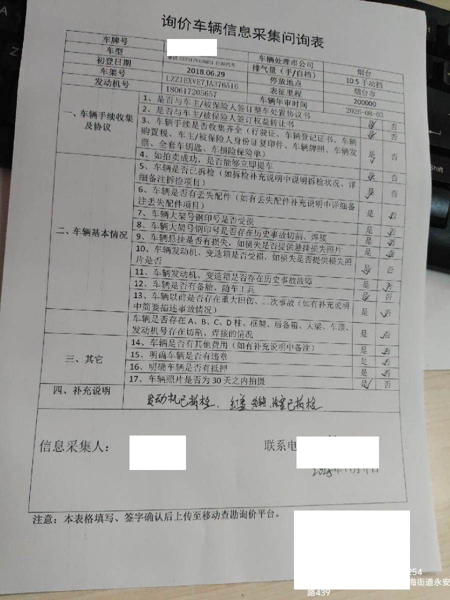 发动机已拆检,配件无丢失 5年以上车辆报价后不得以二次事故为由提出议价或退车弃标。 车辆过户按车牌户籍地政策执行请先行了解清楚,部分地区需车辆到户籍地办理营转非手续,不得以此原因弃标