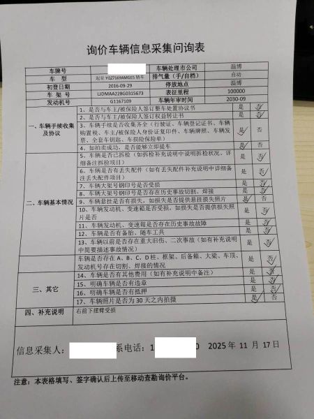 车架号是否受损 使用性质 非营运