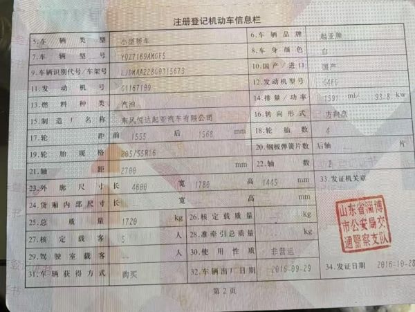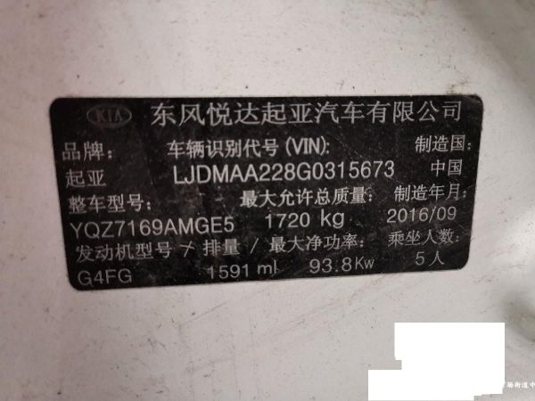 初次登记日期 2016-09-29 车辆名称 起亚牌