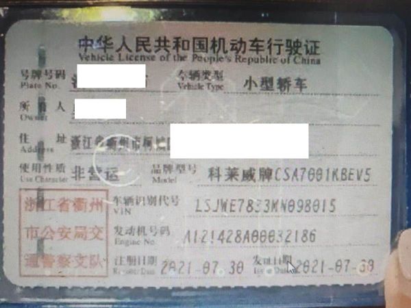 初次登记日期 2021-07-30 车辆名称 荣威 科莱威
