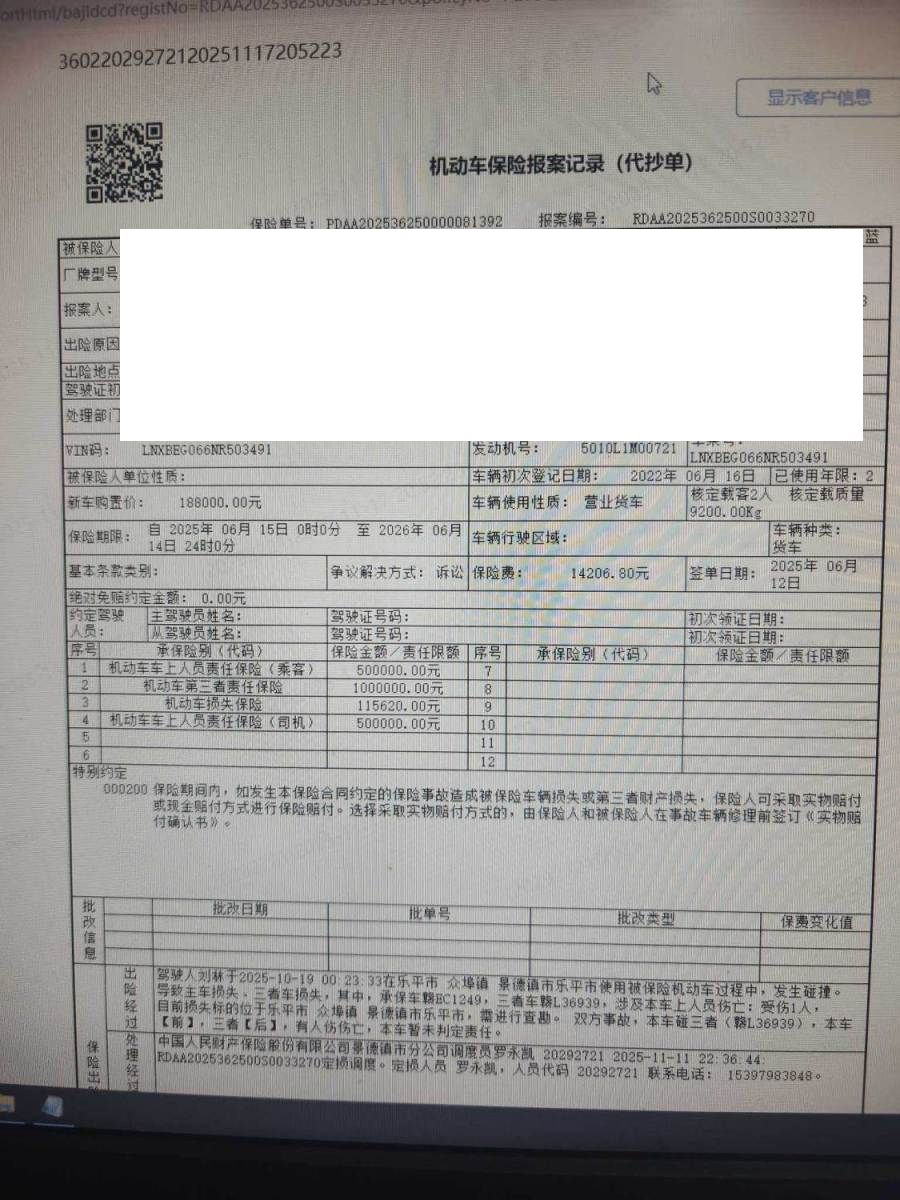 车架号是否受损 未知 使用性质 营运
