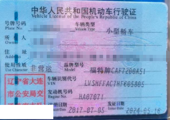 车牌号 辽****** 品牌 福特