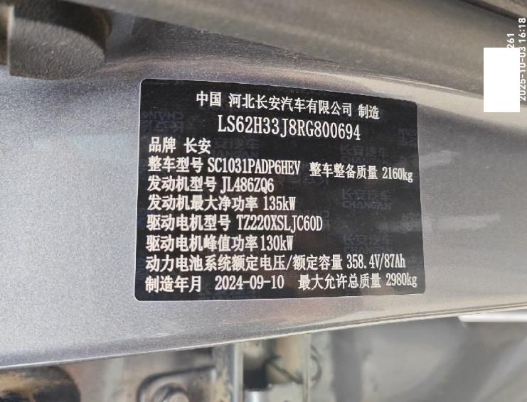 初次登记日期 2024-10-17 车辆名称 长安猎手