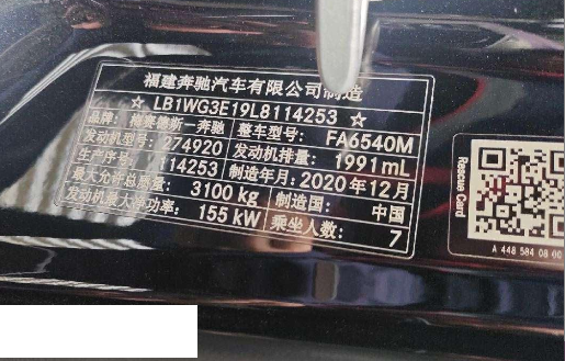 底盘号码 LB1WG3E19L8114253 变速箱类型 手自一体