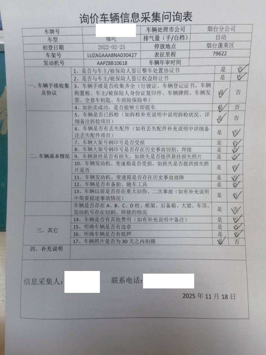 车牌号 鲁****** 品牌 哪吒