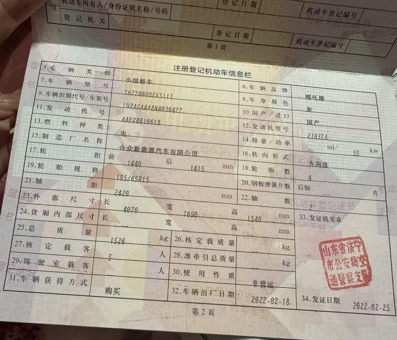 初次登记日期 2022-02-25 车辆名称 哪吒汽车