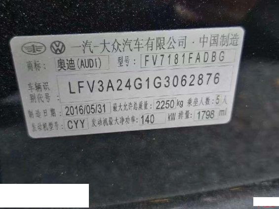 初次登记日期 2016-07-08 车辆名称 奥迪A6L