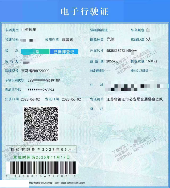 车架号是否受损 未知 使用性质 非营运