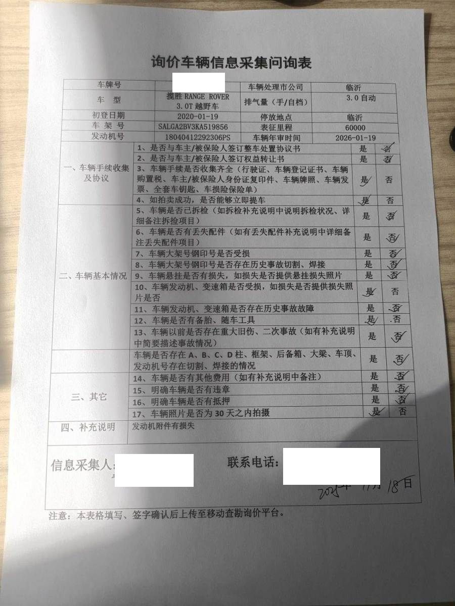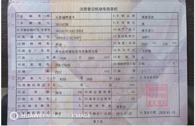 初次登记日期 2020-01-19 车辆名称 路虎 揽胜