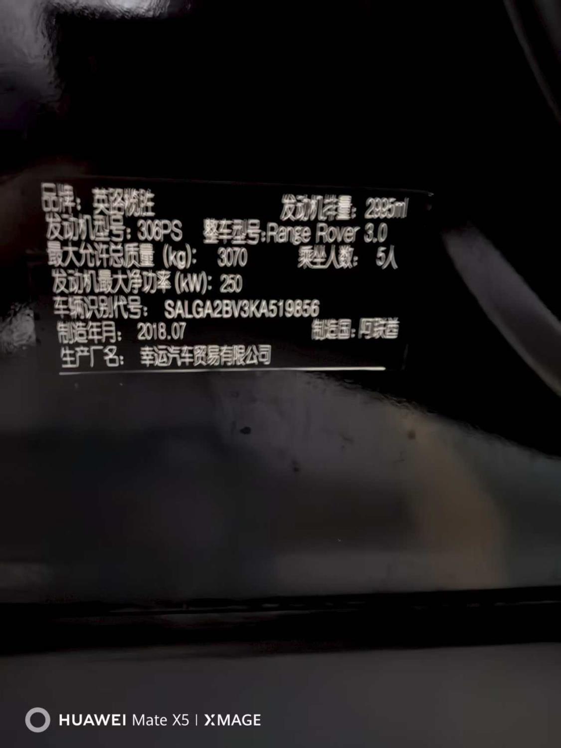 底盘号码 SALGA2BV3KA519856 变速箱类型 手自一体