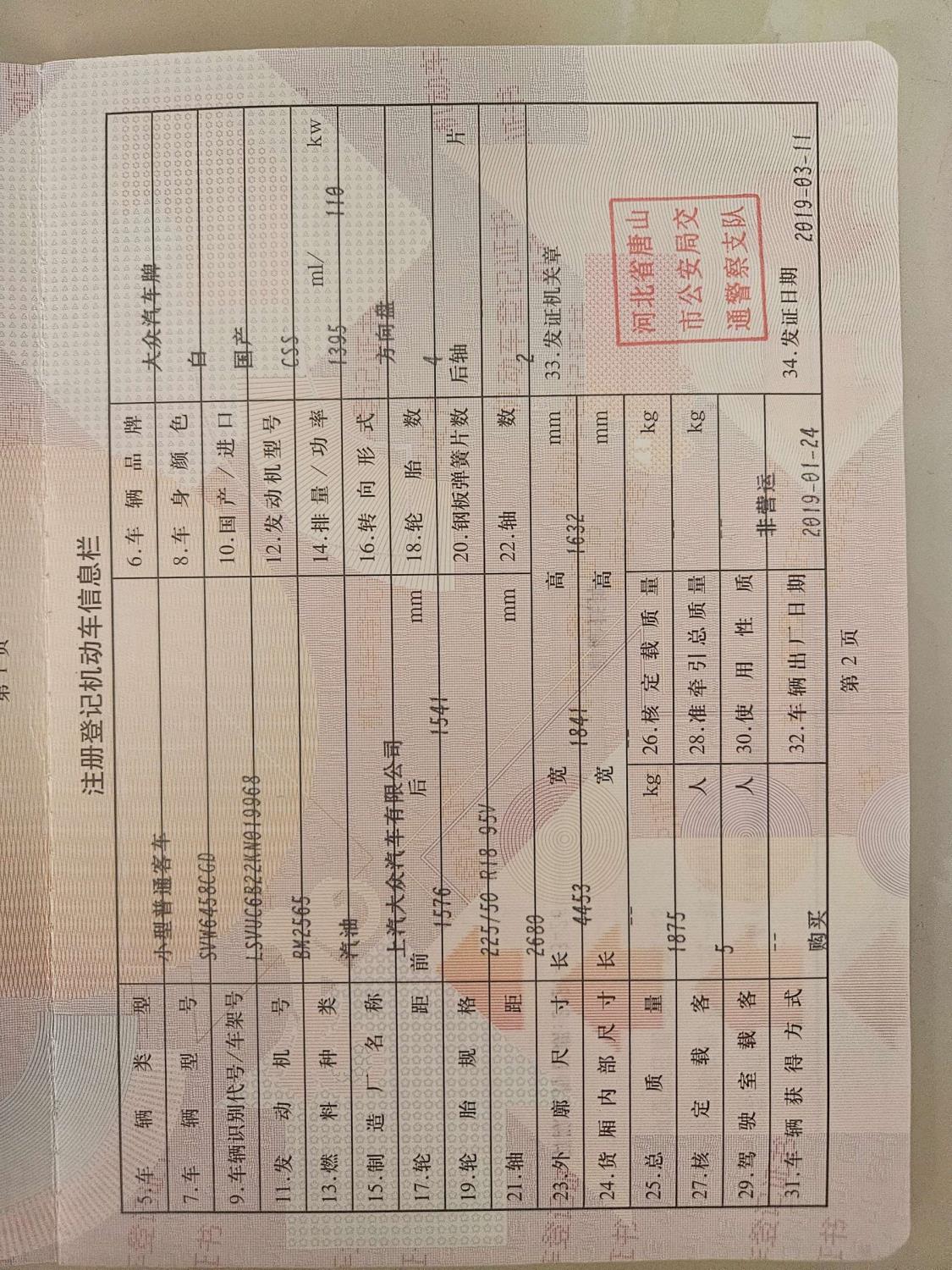 车辆归属地 河北省唐山市 车辆停放仓库 河北省唐山市唐山市