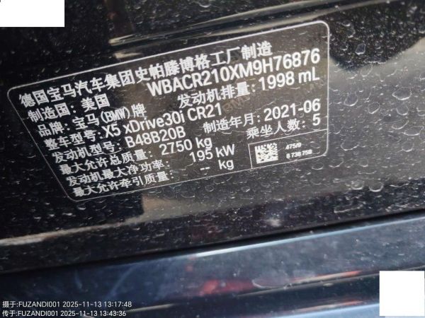 初次登记日期 2021-10-09 车辆名称 宝马X5(进口)